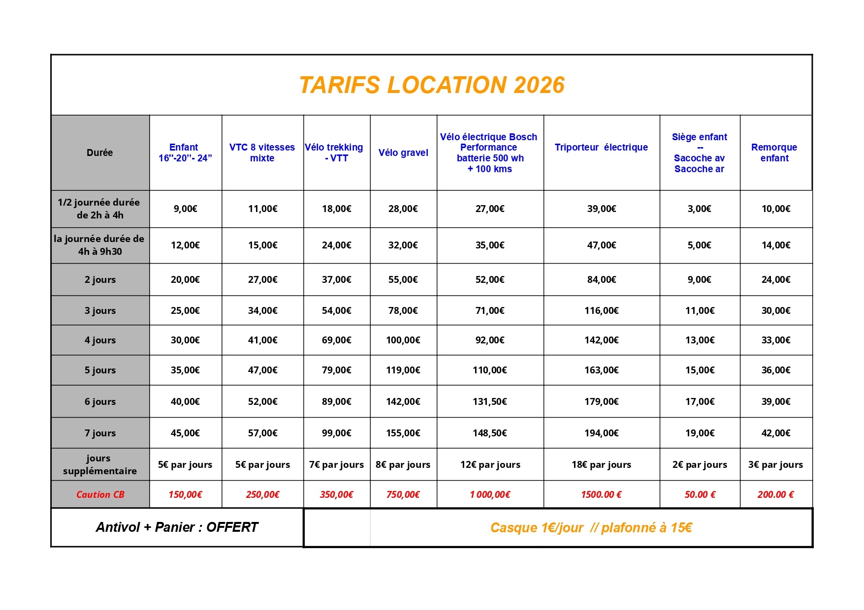 Un antivol et un panier avant vous sont mis à votre disposition gratuitement.